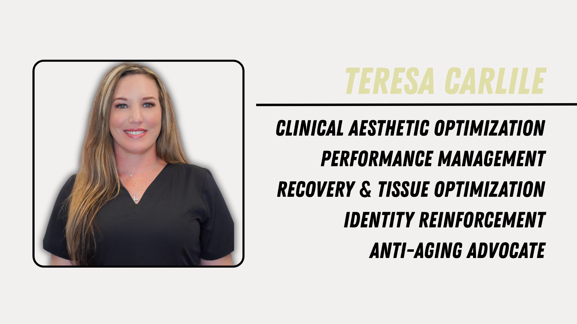Theresa Carlile is a medical aesthetics professional whose career integrates clinical aesthetics with whole-body wellness. Her work aligns external vitality with internal health, supporting confidence, recovery, and longevity as part of a comprehensive preventive health strategy. She bridges medical aesthetics and performance optimization to reinforce professional presence and long-term well-being.